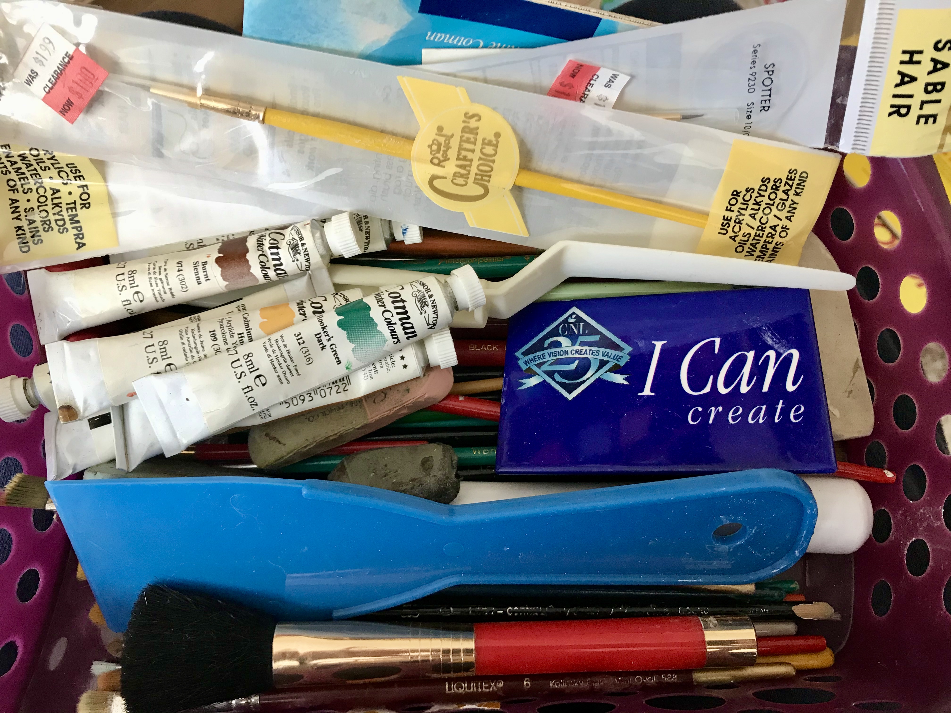 Yesterday, I finally had the resolve to go through my mother’s box of painting supplies. During the last decades of her life, she rejuvenated her creativity by drawing and painting her favorite flowers. I was touched to discover among her supplies, a pin that said, “I Can Create,” part of a client’s 25th anniversary celebration that I had art directed in 1998.