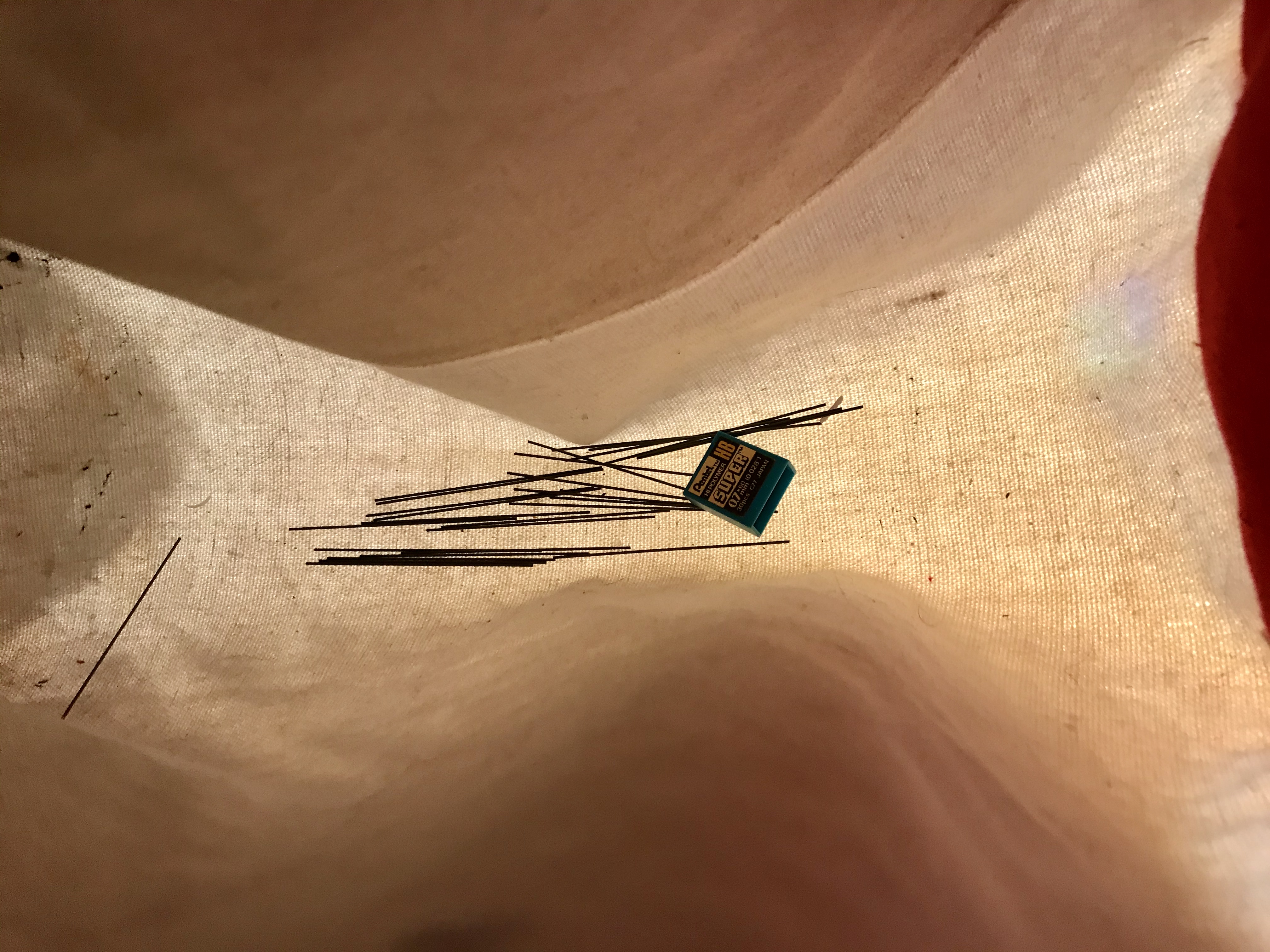 I then lost my spit. At the bottom of the empty bag was the top of the lead refill container and all the pieces of lead. They had somehow fallen directly INTO the bag as I left the room.