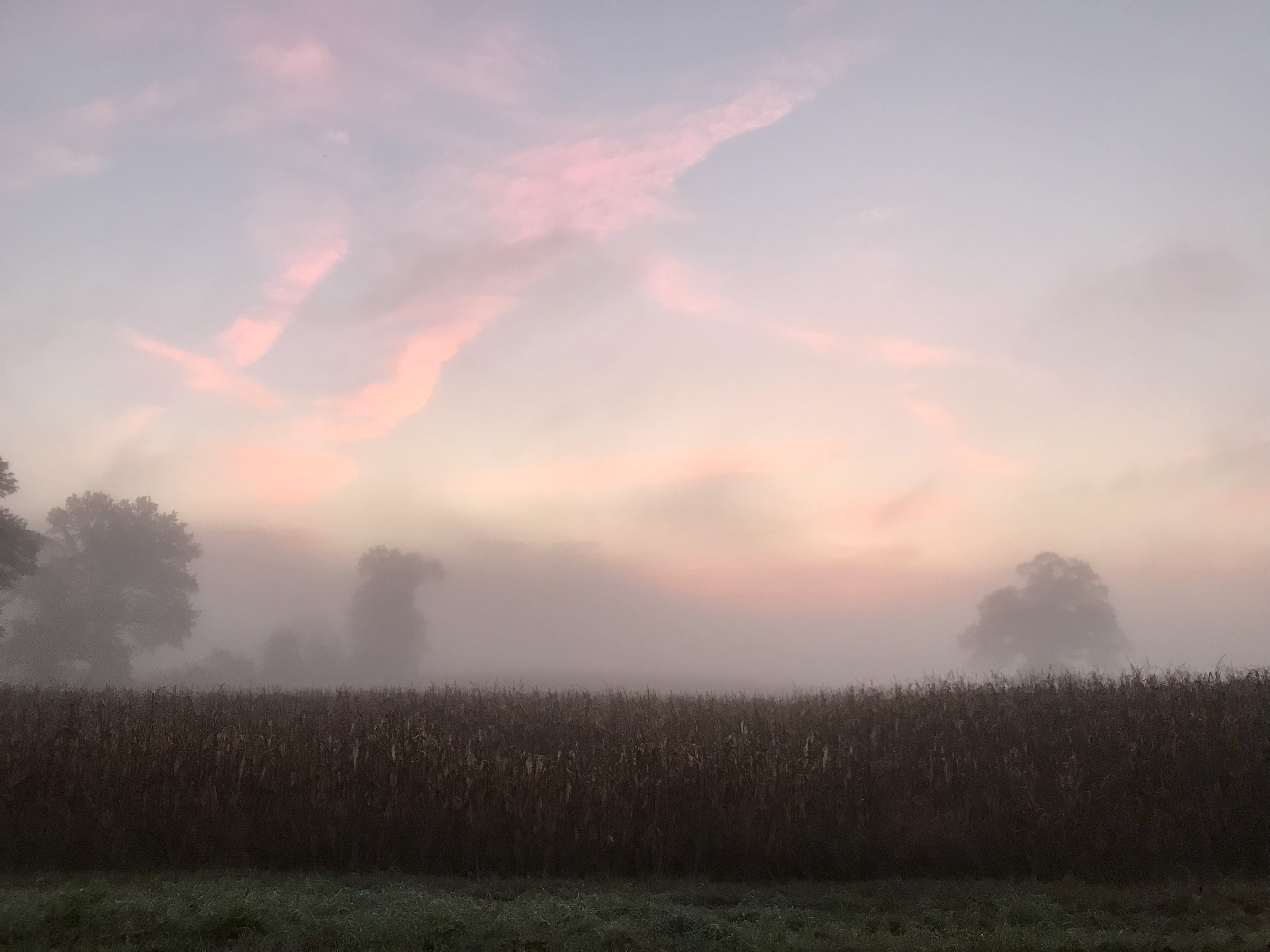 A few days late, but grateful nonetheless. I love everything about this. The beautiful photos. The wonderful adversity-fog lesson. The insightful and inspiring comments. Thank you for allowing me to join. I wonder if the final photo at 7:44, with so much going on, captures the essence of current circumstances for many: shadowed stalks in the foreground, the fog still present, trees left and right, and clouds seemingly crossing above in different directions; all the while, the reason for going out to the field constantly present and centered, yet tantalizingly distant.